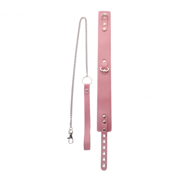 Стильный ошейник из коллекции в потрясающем розовом цвете "Crazy Handmade" с металлическим поводком - отличный БДСМ аксессуар для самой незабываемой сессии!